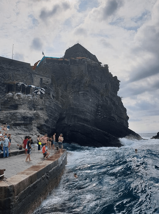 Here I made the one (and I believe only…) regret of this entire journey. Do you see the last picture with the large waves? This was at Vernazza, the last but one stop. I was watching at amazement how the waves were rolling, with (a few) people daring to jump in – and while it did cross my mind to disembark, somehow I did not. I was maybe tired, perhaps I had in mind that the bike was stacked in the middle of the ship and it would have been complicated to disembark with it – not sure, I just sat there for the five minutes, wanting to be there in the water, but not doing anything about it. When in Monterosso, the final destination, I thought of buying a return ticket to Vernazza, but then it would have meant a lot of time lost.