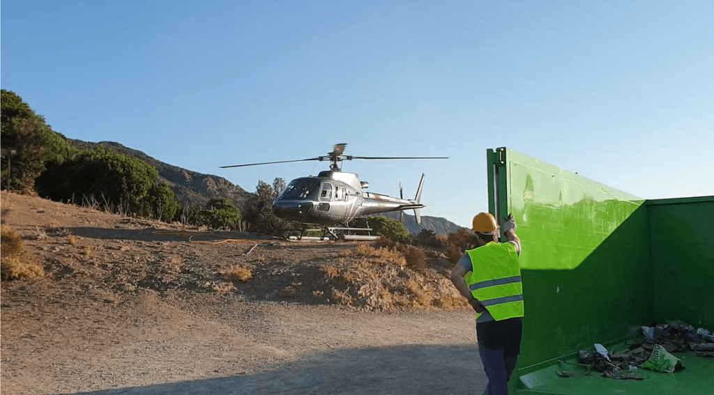 No! This chopper, as it turned out, was there to haul garbage from a small village, to which no roads lead. I spoke with the pilot in French, he was amazed at what I was doing, I was amazed at his work – I tried hitching a ride, to no avail, he was busy hauling the garbage, taking off and landing multiple times. The trucks were there at the pass to load the garbage from the containers attached to the chopper.