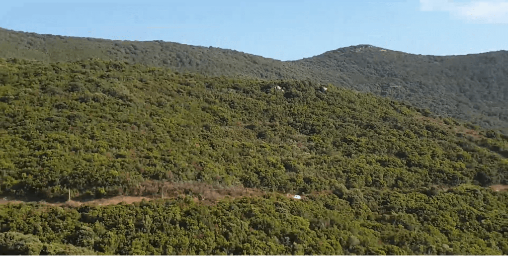 A bit right she was, however, there was really just one major artery leading outside town. There was a bike path for a little while, next to the coast and close to the port with large cruise ships, ferries and yachts, but it ended and soon I was on a 3-lane motorway, with apparently no alternative. Some drivers honked at me, but what was there to do – it turned out they were wrong, biking was allowed on that section, it was only later that prohibiting signs came. The “only” road the young girl mentioned went in the southeast direction, I stuck to the coast, heading south. This took me right outside the runway of Ajaccio’s airport, I saw an Air France take off for Nizza, but, alas, no plane was landing at that time, it would have been right overhead. Oh well.