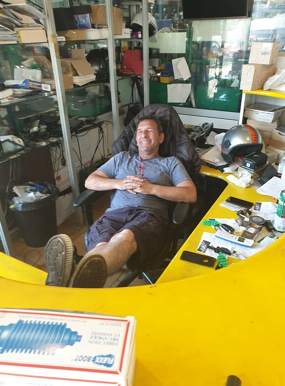 It turned out to be a car shop. It was getting close to noon and in Corsica a lot of stores close then for siesta. I managed to find the owner, who said, in English, “yes, we can do it, but we are very expensive – do you have a lot of money?”, people around laughed. One of his workers came, dismantled the saddle and disappeared. A little while later, he was back, smiling, started putting the saddle back on – it breaks again. Oh no. Second try – same. He winks at me and comes back like thirty minutes later. He fabricated a sort of a metal tube around the part that broke that I believe will hold forever – wow, all of this in his lunchbreak. I ask how much I owe him, points me to be boss, who was chilling behind his desk, with the feet up. Again, I want to pay, he says “bon voyage!”. I could hardly believe it – spending over an hour, with three tries and wanting nothing in exchange? On the other side of the road, I saw a restaurant with an ice-cream parlor, I walk over to get a large serving of icecream. The woman, also speaking English, asked me what it was for and says, “Ah, this guy is my son-in-law, you should get him some cake instead”. So I ended up “paying” with a nice cake, he was very appreciative. Thanks, you nice Corsicans!