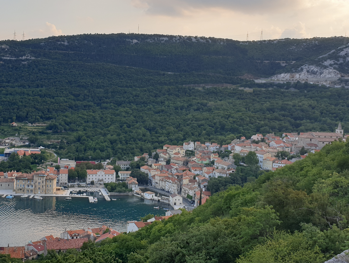 One more nice view from the summit, now it was really just rolling down, leading through small suburban places just before Rijeka. On the internet, the hotel situation was dire: no places to stay below Eur 250. On the road, however, there were signs to a B&B accommodation and reaching it, I was told they were fully booked. With some translation help of a guest from Germany who was originally from Tajikistan and speaking Russian with the host lady (Croatian is a Slavic language), I was given another address to try. It was in a large house belonging to one family, the old mother had a room to let for Eur 25. It was actually a sofa in her living room, she was sleeping right next to it in her bedroom. She asked me for some time, as her favorite series was running and the TV was in “my” room. I did not mind: after getting a schnaps from her, I walked down to the coast, about 10 minutes away, and went for a great, refreshing swim in the sunset. By the time I was done, my bed was made and the room was all mine. I slept quite well, except for having been bitten by mosquitoes a couple of times.