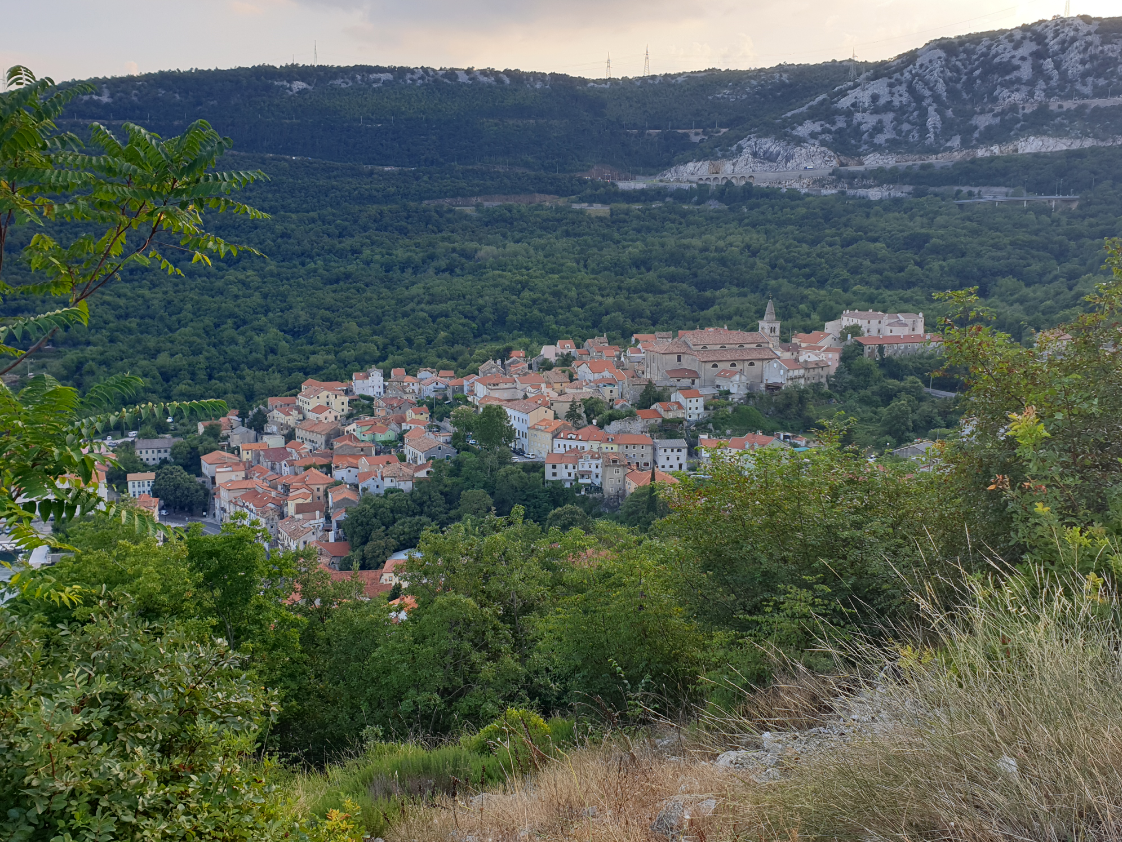 I spotted the bridge connecting the island Krk, which I had crossed with my friend Rupert on yet another bike trip on our way to Mali Losinj like 15 year ago, many nice memories of this area. Soon I reached the city of Rijeka, also called Fiume. As it was in the afternoon, around 5 pm, I thought some warm food would be fine. There was a small restaurant with a veranda, with yet no guests, it looked inviting – the lady host smiled and even without bringing a menu card, she said she will prepare a dinner. After a few minutes, the soup arrived; it was an entire tureen, large enough for about four servings. I was full after just two, then the entrée arrived: a pan with two stilts of pork, with lots of roasted potatoes and onions. I could hardly eat anything more, but did drink the half liter of house wine and a full liter of sparkling water. For all of this, I paid Eur 20, which was not a lot for all what I had received. The place is called Krcma (pub) Bujan, I can surely recommend it.