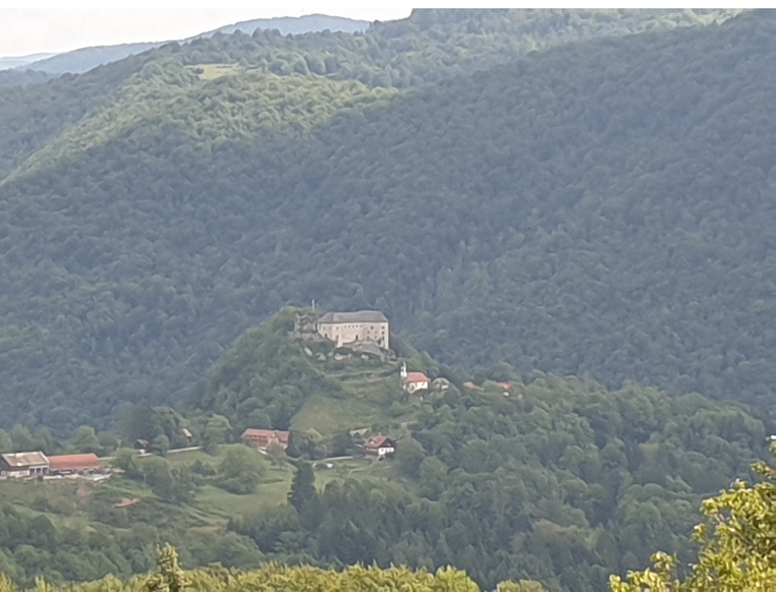 The day started a bit grim, perhaps due to my mood, I had not had one of the best nights ever behind me – but, luckily, I did not get wet. After packing up my tent, I reached the town of Kocevje, where I had a big breakfast at a sparkling new Spar supermarket, they were nice enough to charge my phone. I was mildly frustrated, there was some construction going on in town; I misunderstood a sign and made a large detour of on a bumpy road, oh well. I was cruising through villages in the initially flat landscape, when a strong climb started and I thought this would last till the Croatian border, which was about 20 kilometers away, after all, most border crossings are at the summit of mountains – but no, here it was actually soon downhill, reaching a river, called Kolpa. Not far, was a huge castle (the second largest in the country), called Kostel – it was a tough decision, but I decided not to visit it, but to ride further.